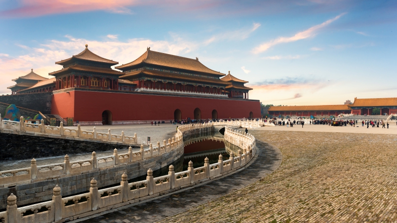 Traditional Chinese architecture, such as that seen in the Forbidden City, emphasizes monumental scale, strict bilateral symmetry, and hierarchy. Buildings are often massive, raised on platforms, and arranged along a dominant central axis to project imperial authority, adhering closely to rigid philosophical and cosmological principles.