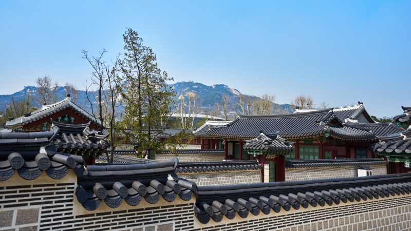 The aesthetic utilizes a more subdued and balanced color palette (Dancheong), where vibrant mineral colors are used moderately on exposed wood details. Unlike the sharp upward curve of Chinese roofs, the Korean roofline has a gentle, soft curve at the eaves. This approach yields an architecture of quiet dignity, where the natural wood grain and subtle colors are highly valued.
